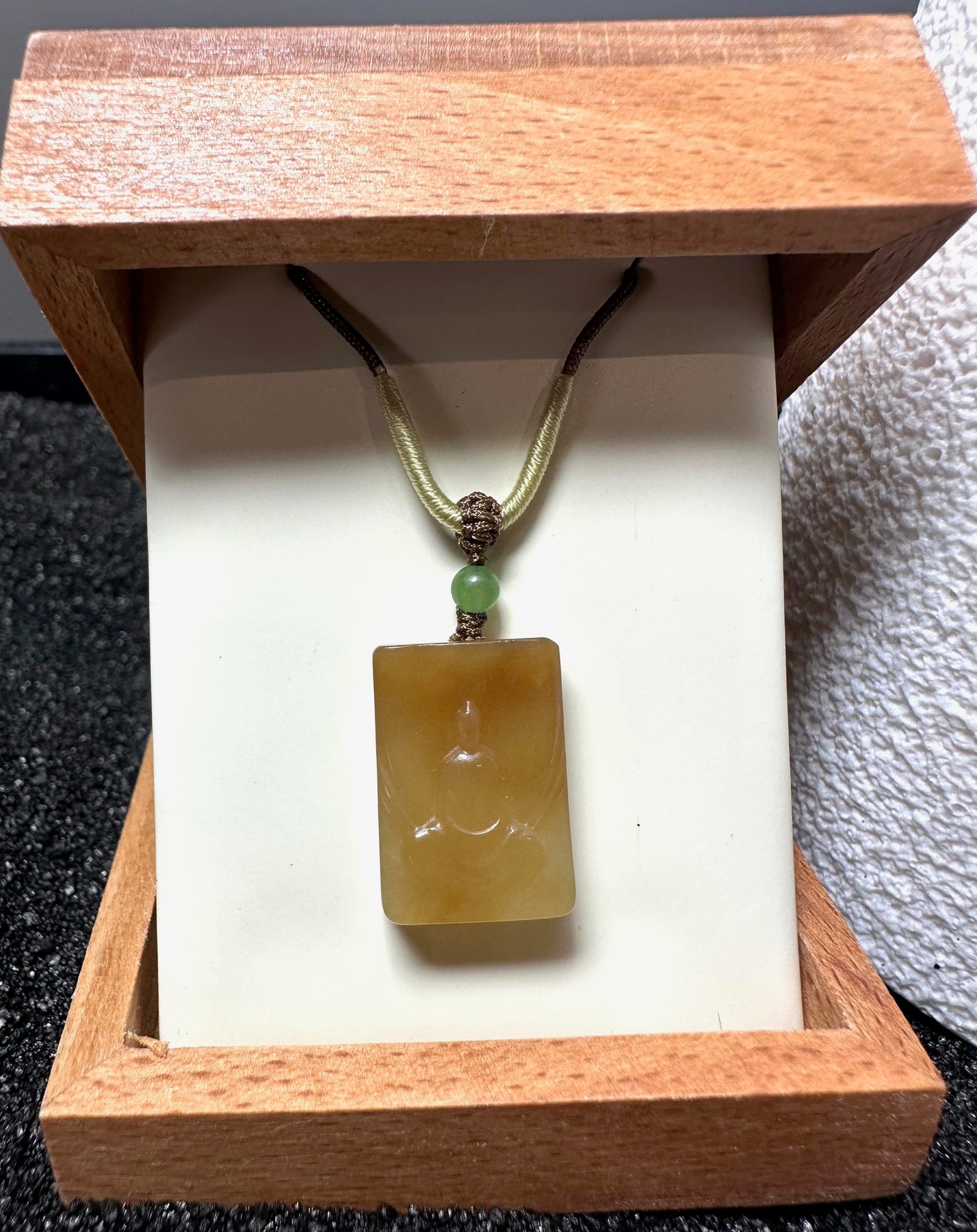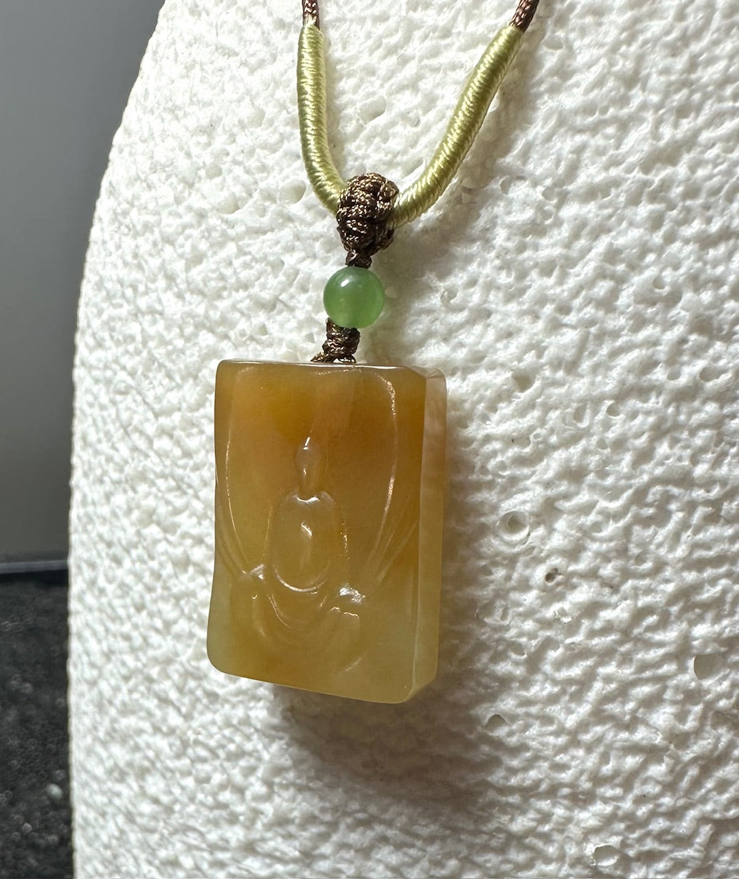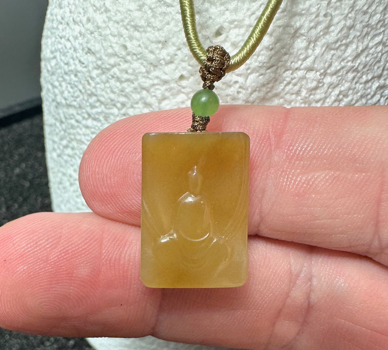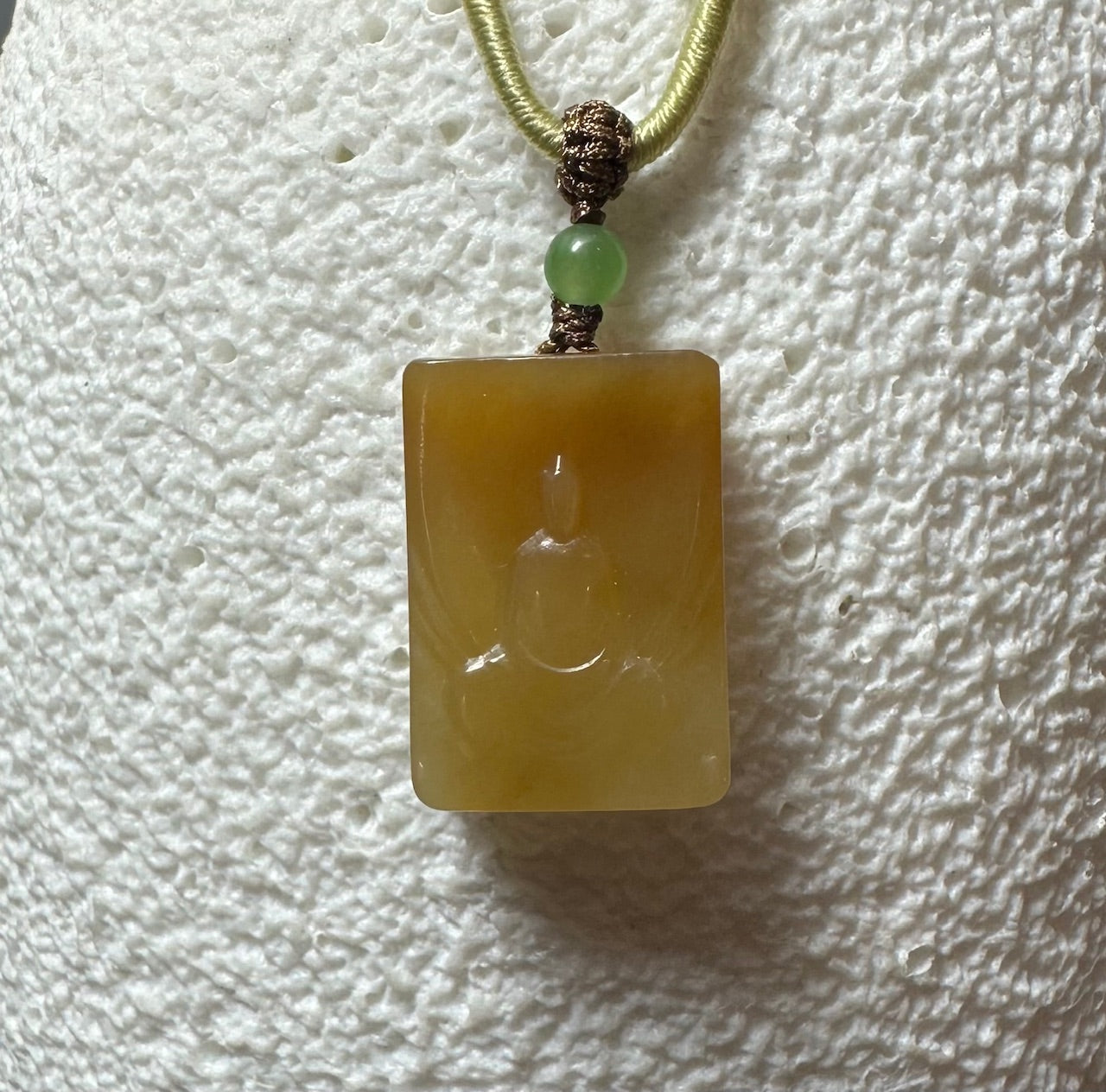 Dainty Honey Jade Buddha Pendant, 20mm in size.