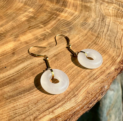 18K White Jade Earrings, Circle Of Life