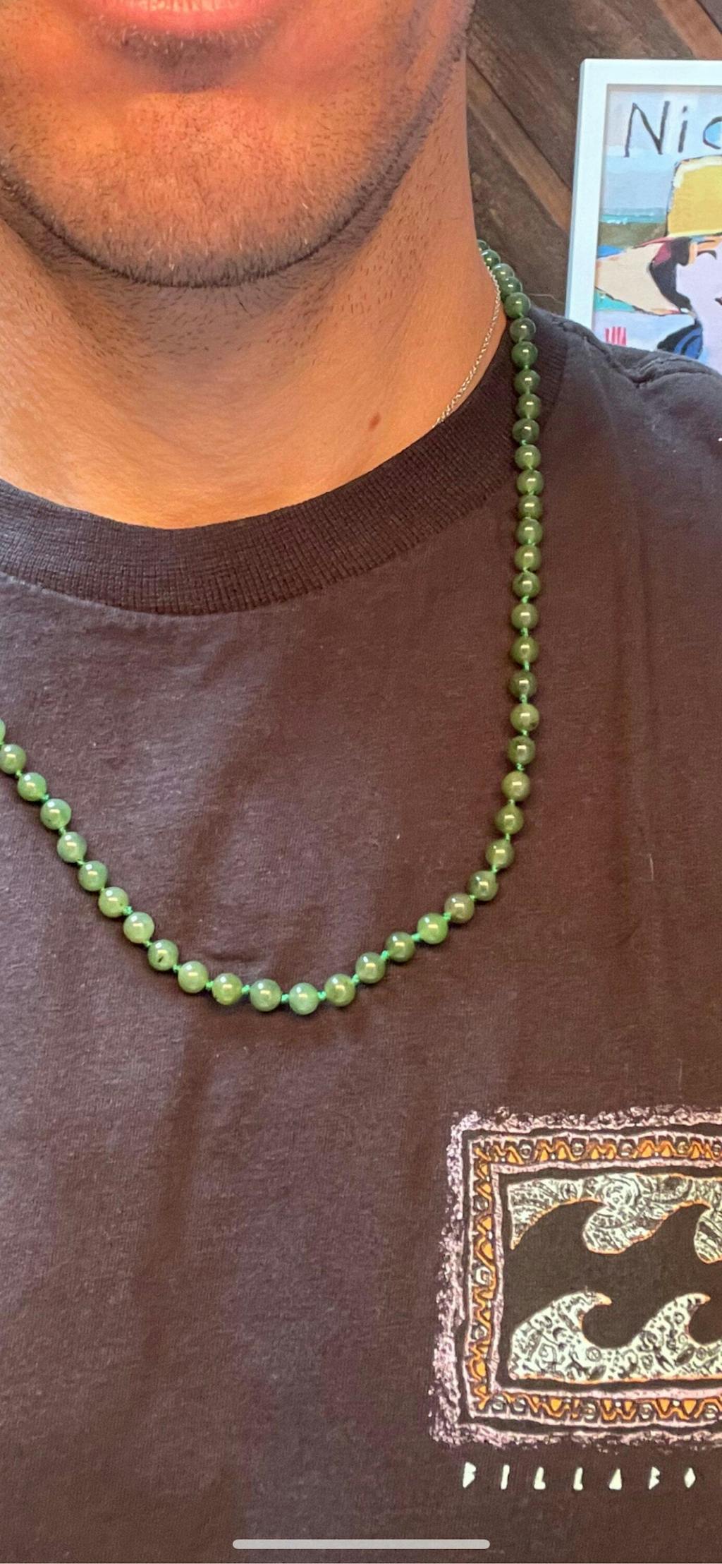 Love the feel of the jade around my neck and the 18 inch length is perfect for me. I I like how it warms up to my skin temperature. Excellent quality.
