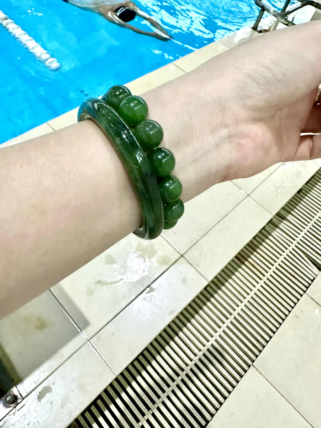 A stretchy Jade bracelet fashioned from 10mm round beads. 22 beads in total - approx. 7.5"