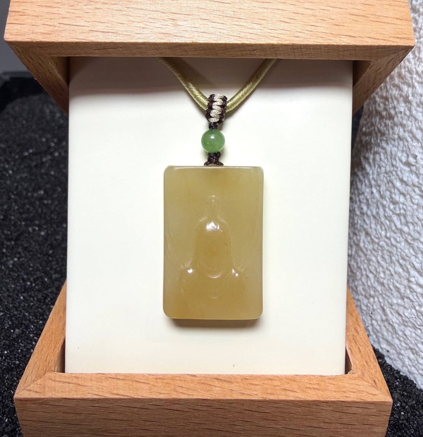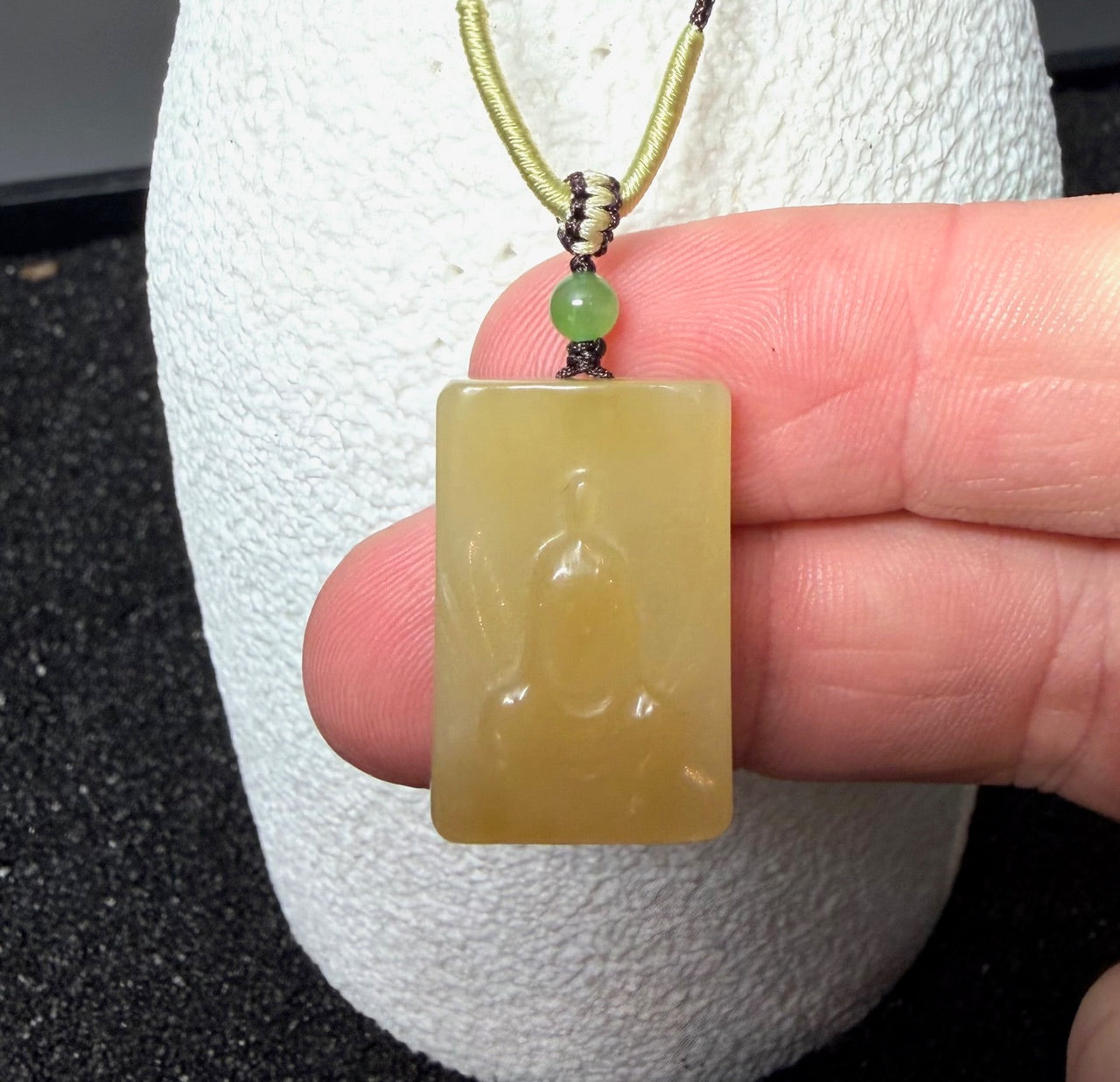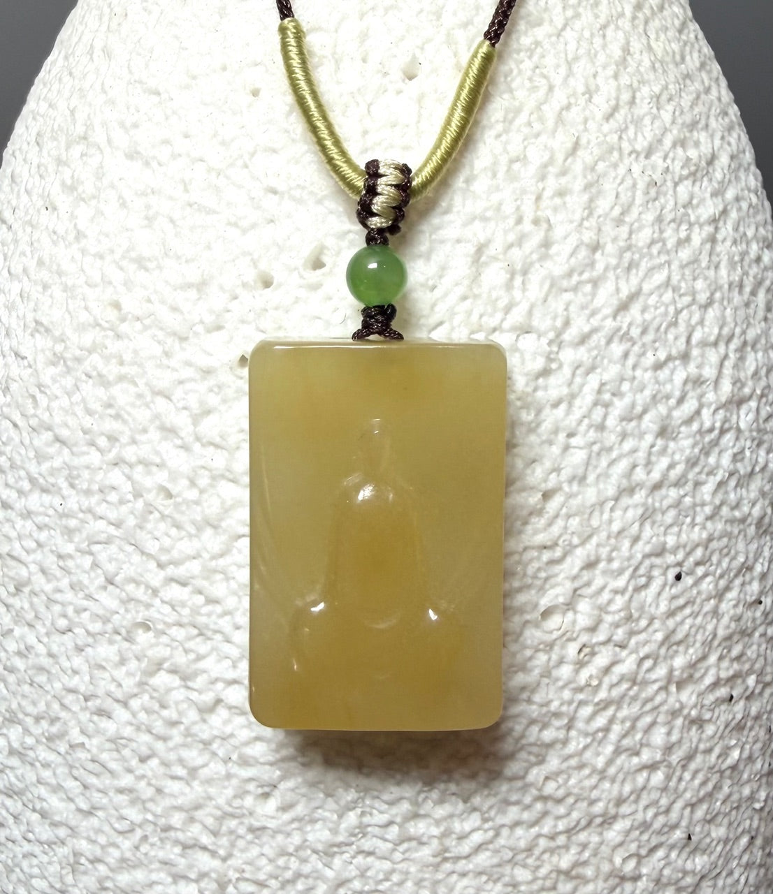 Dainty Honey Jade Buddha Pendant, 21mm in size.
