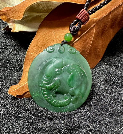 Canadian Nephrite Jade Elephant pendant. This pendant measures approx. 46mm and comes complete in a wooden gift box. This pendant has both high polish and satin polish parts.