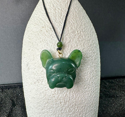 After TONS of requests we have finally made this Frenchy Pendant. This Frenchy/ Boston Dog pendant is hand crafted from natural Canadian Nephrite jade. This pendant measures approximately 30mm in size and has two finish options; High polish and satin. This pendant comes with a fully adjustable black waxed cord and comes complete with a hand crafted wooden gift box.All of our Jade is 100% Natural.