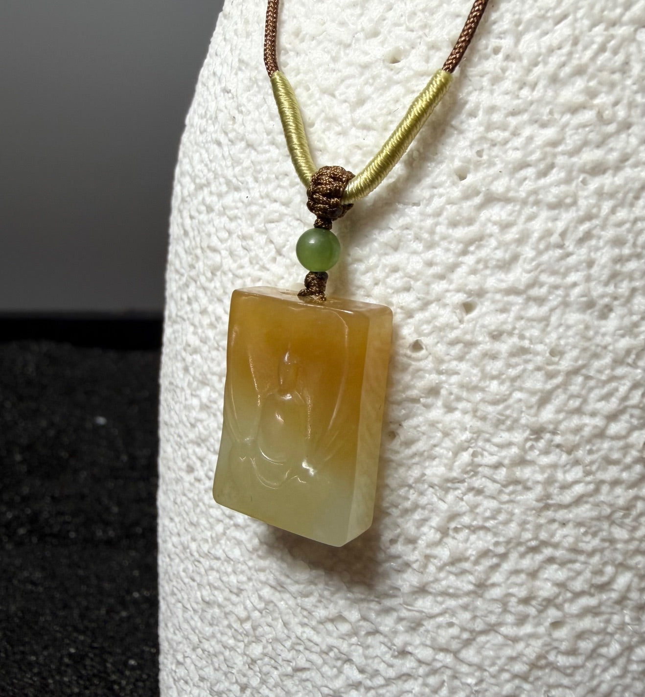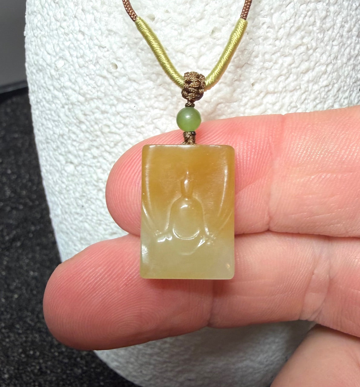 Dainty Honey Jade Buddha Pendant, 14.5mm in size.