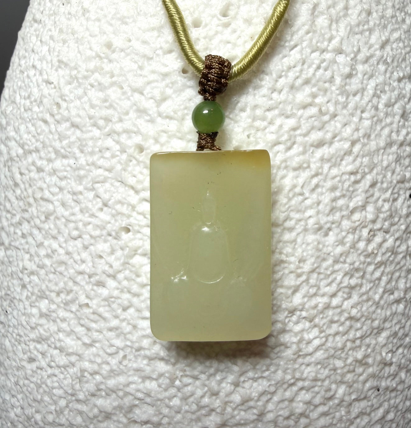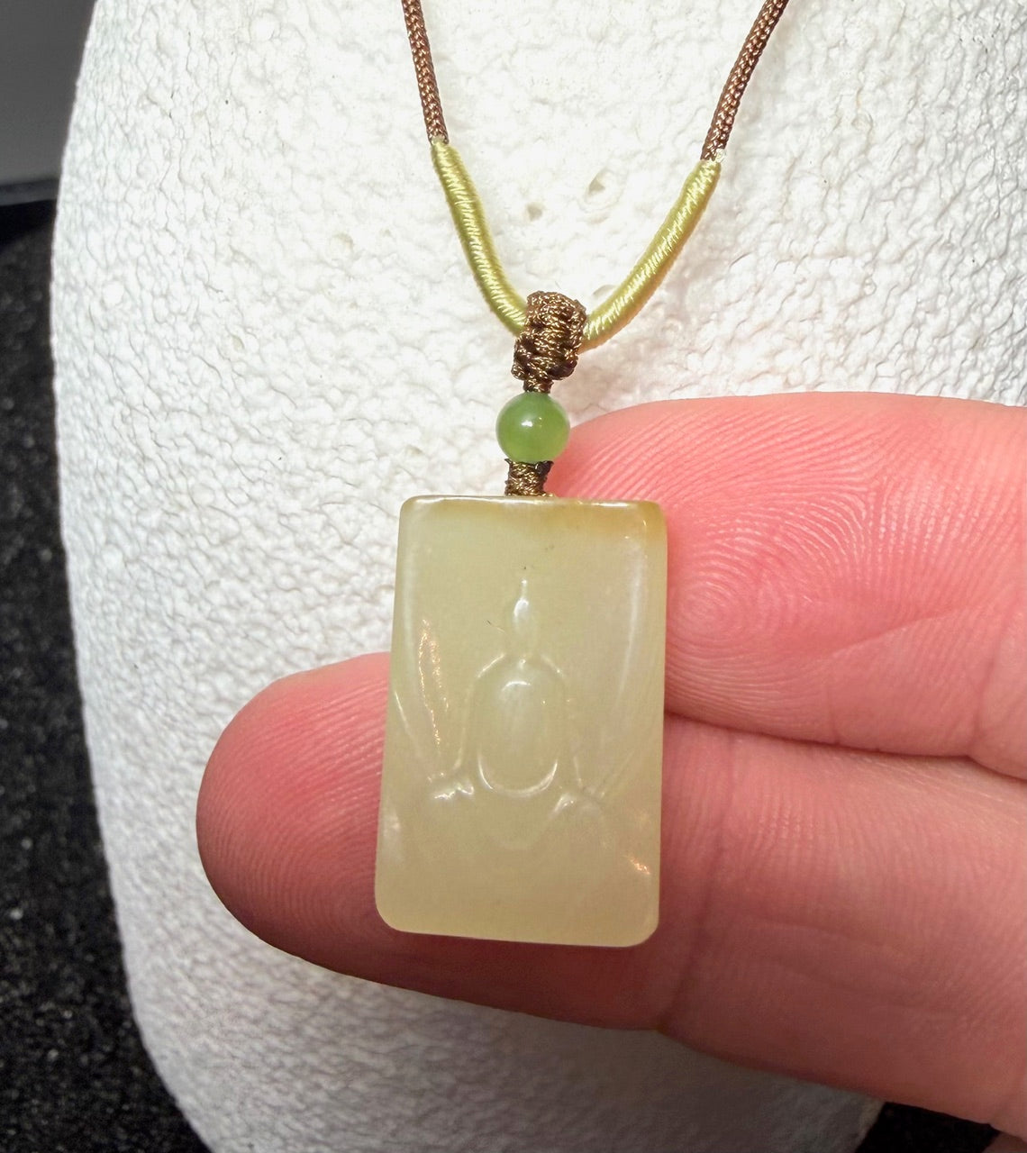 Dainty Honey Jade Buddha Pendant, 21mm in size.