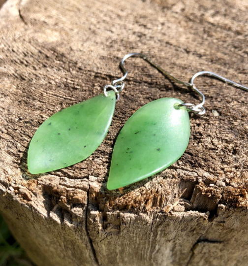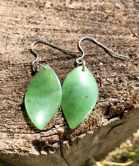 Beautiful and very translucent! These earrings are hand carved from Canadian Nephrite Jade, the hooks are Sterling Silver. The leaf will measure approximately 28*15mm and will come complete with a hand-crafted wooden gift box.A leaf symbolizes fertility and growth.