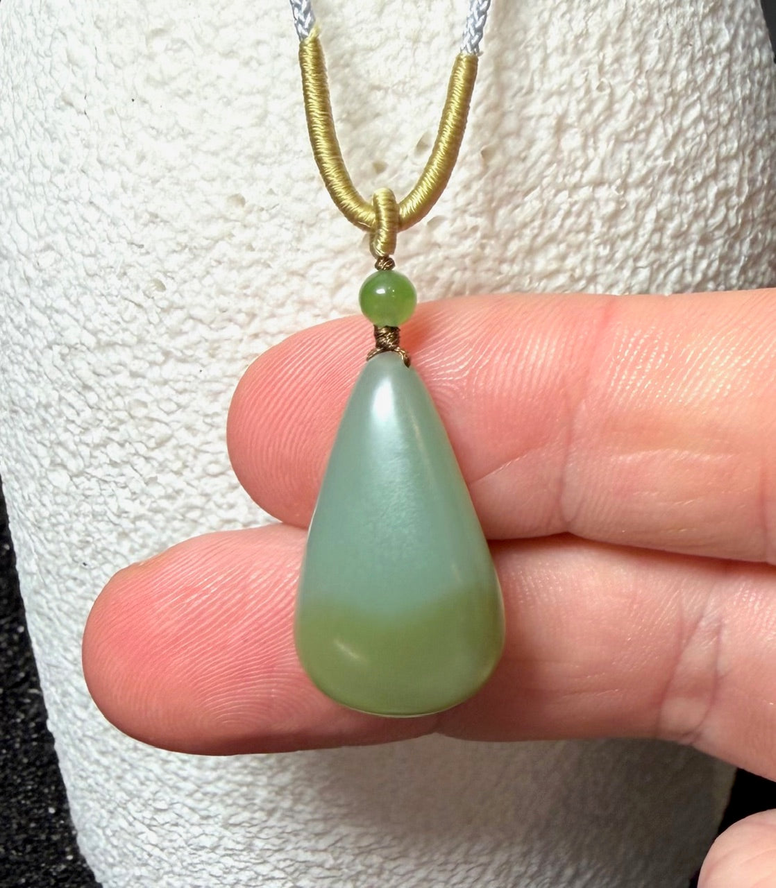 2 Tone Siberian Nephrite Jade Drop Pendant.