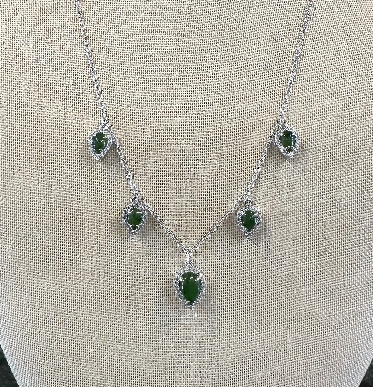 This comes with an adjustable Silver chain.  Fully extended, it measures 19.5" and can shorten up to 17.5".