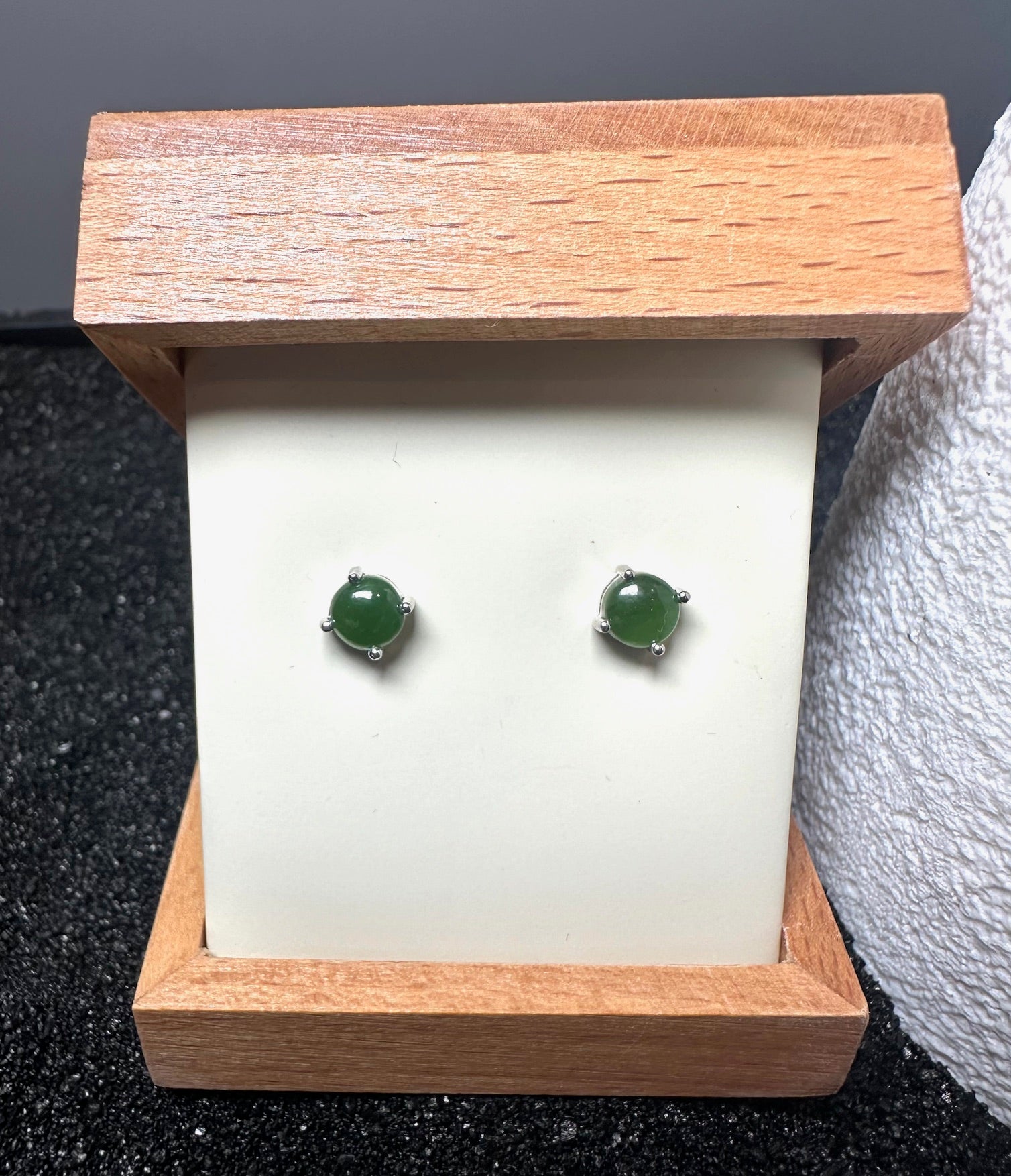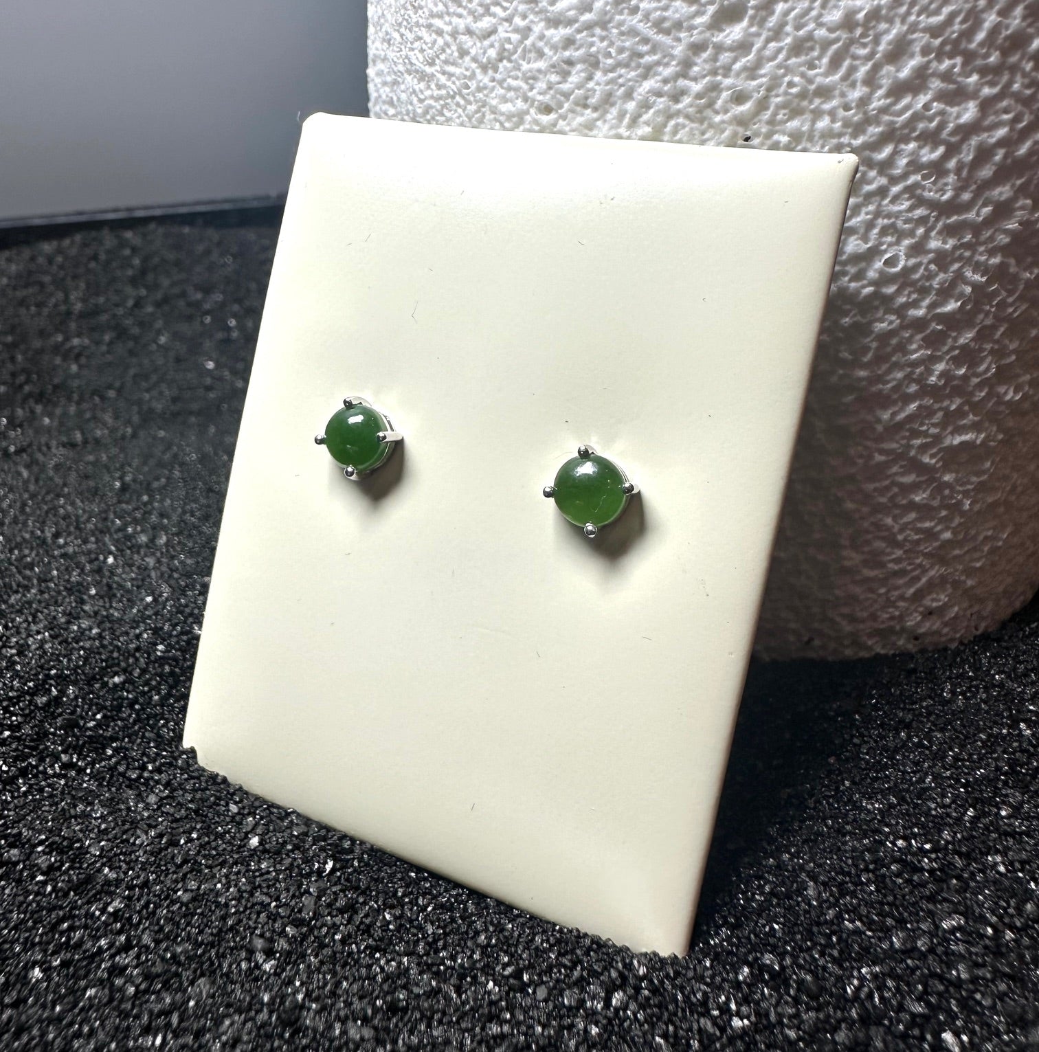 Canadian Nephrite Jade stud earrings that are set in Sterling Silver.