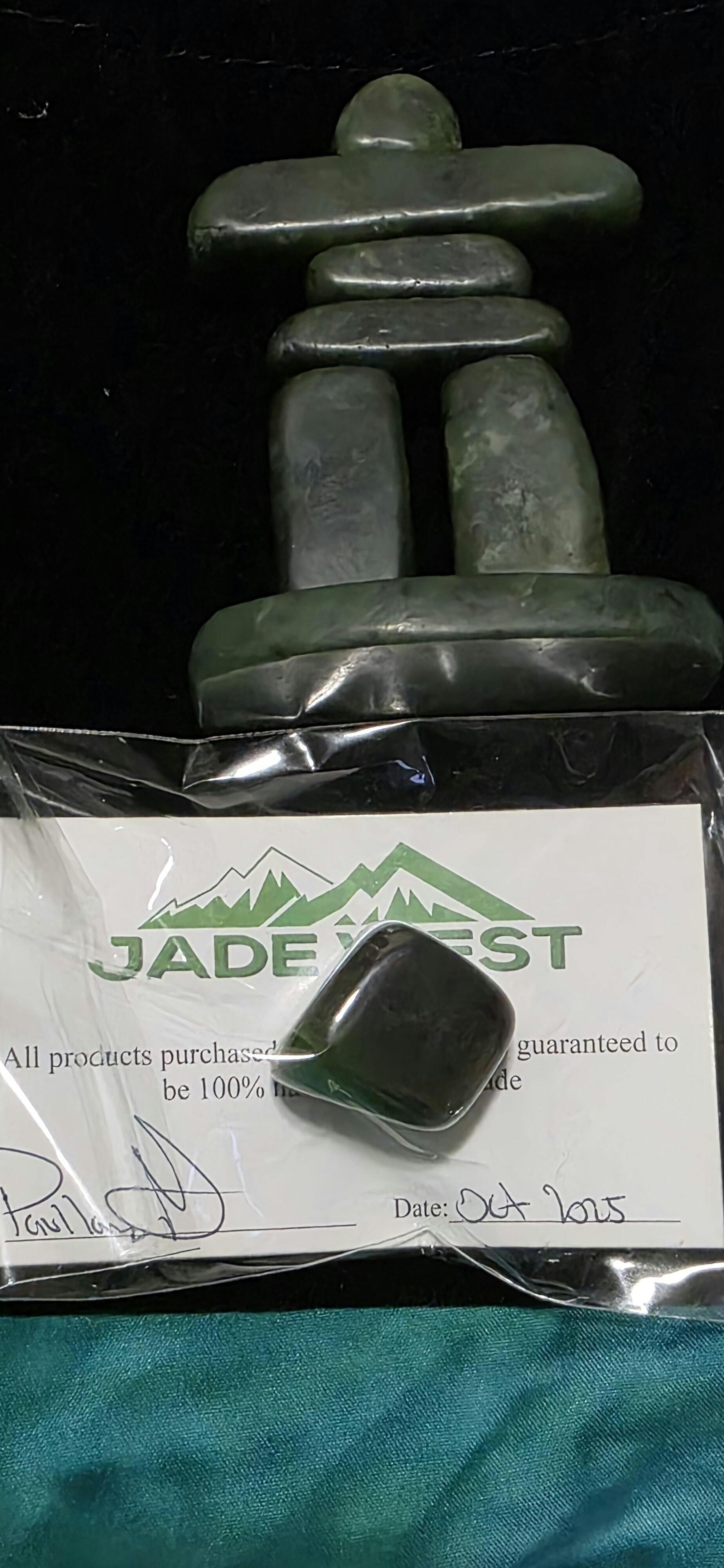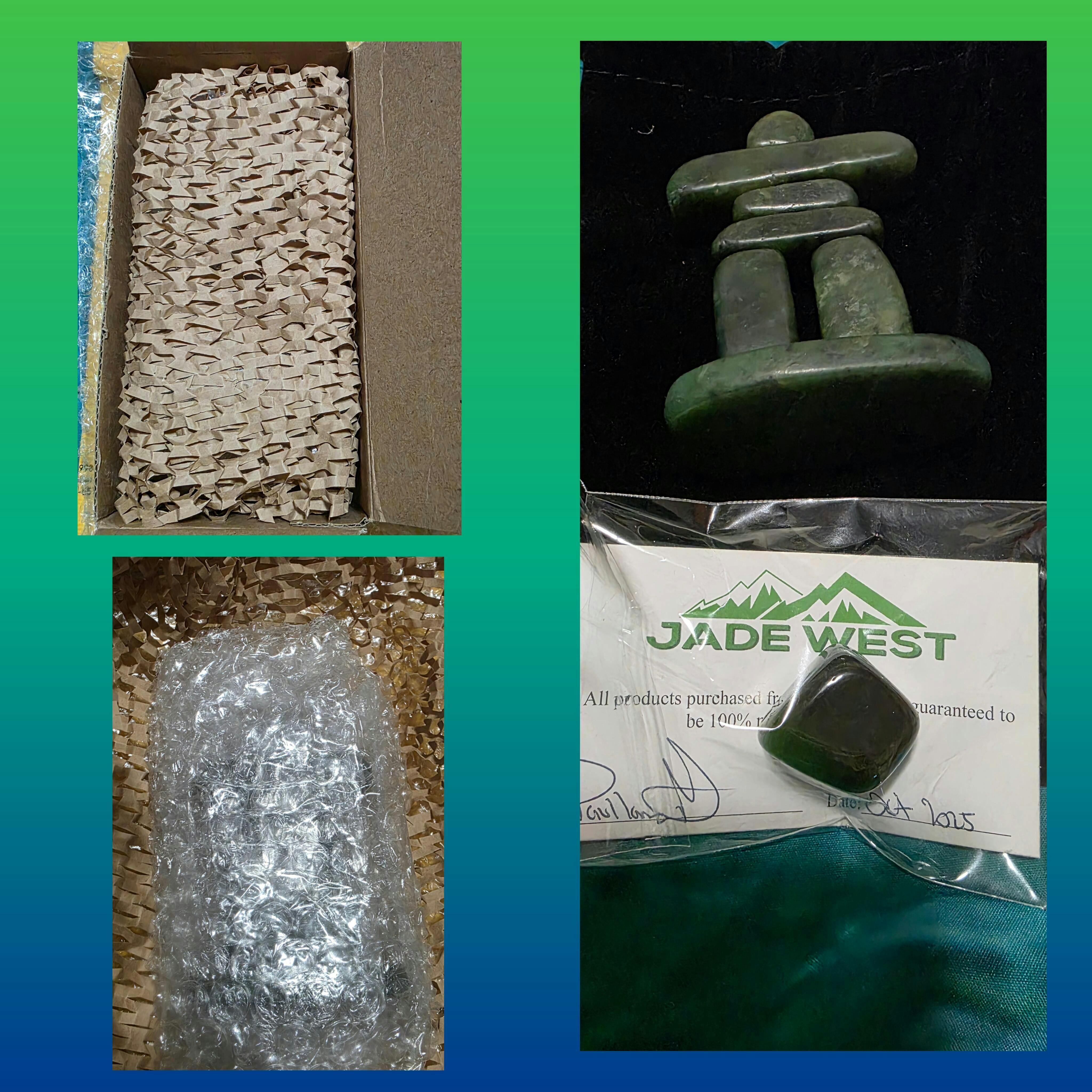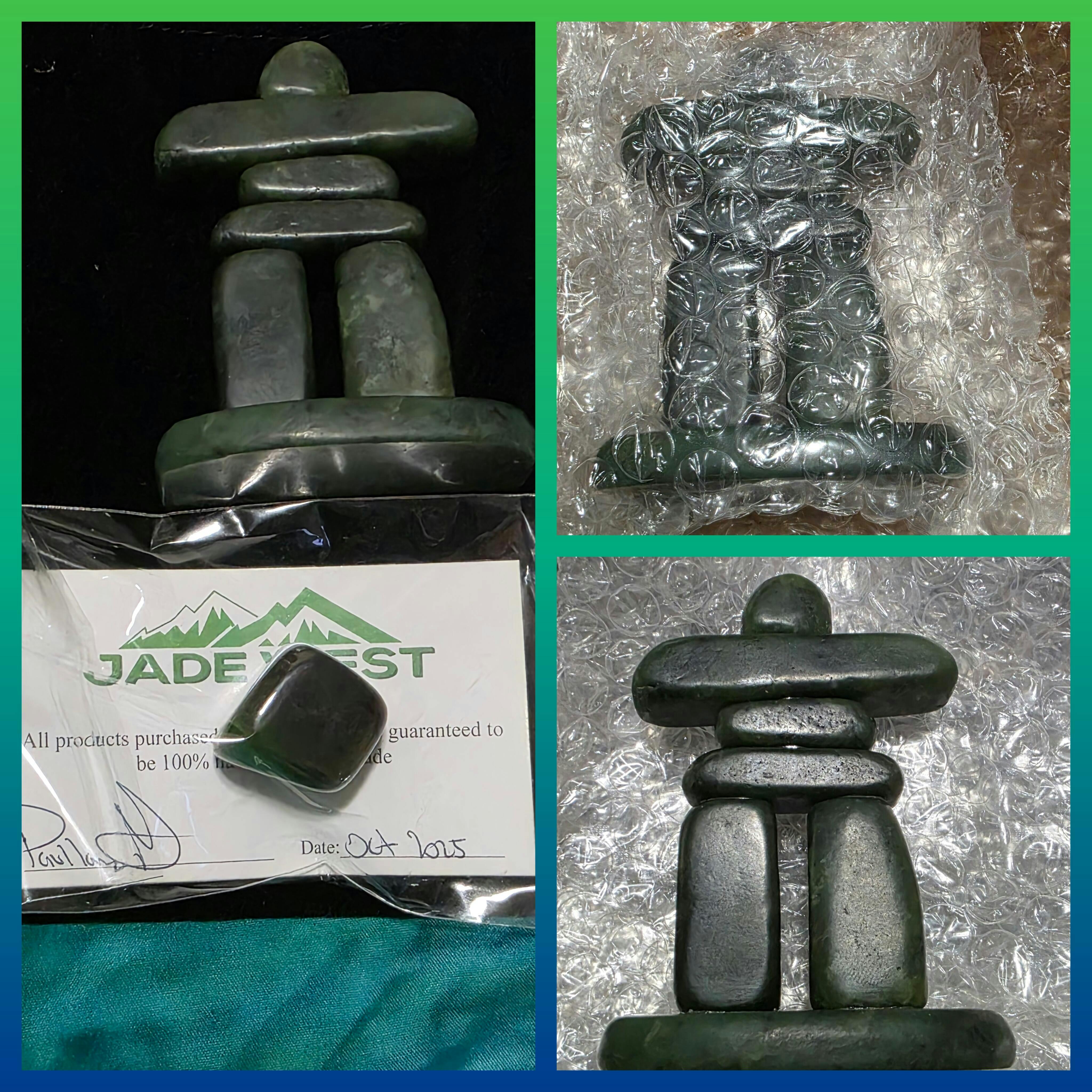 These carvings are all unique and each one is slightly different. The jade has a satin polish and the carving in very rough ( just like how they are found in northern Canada )