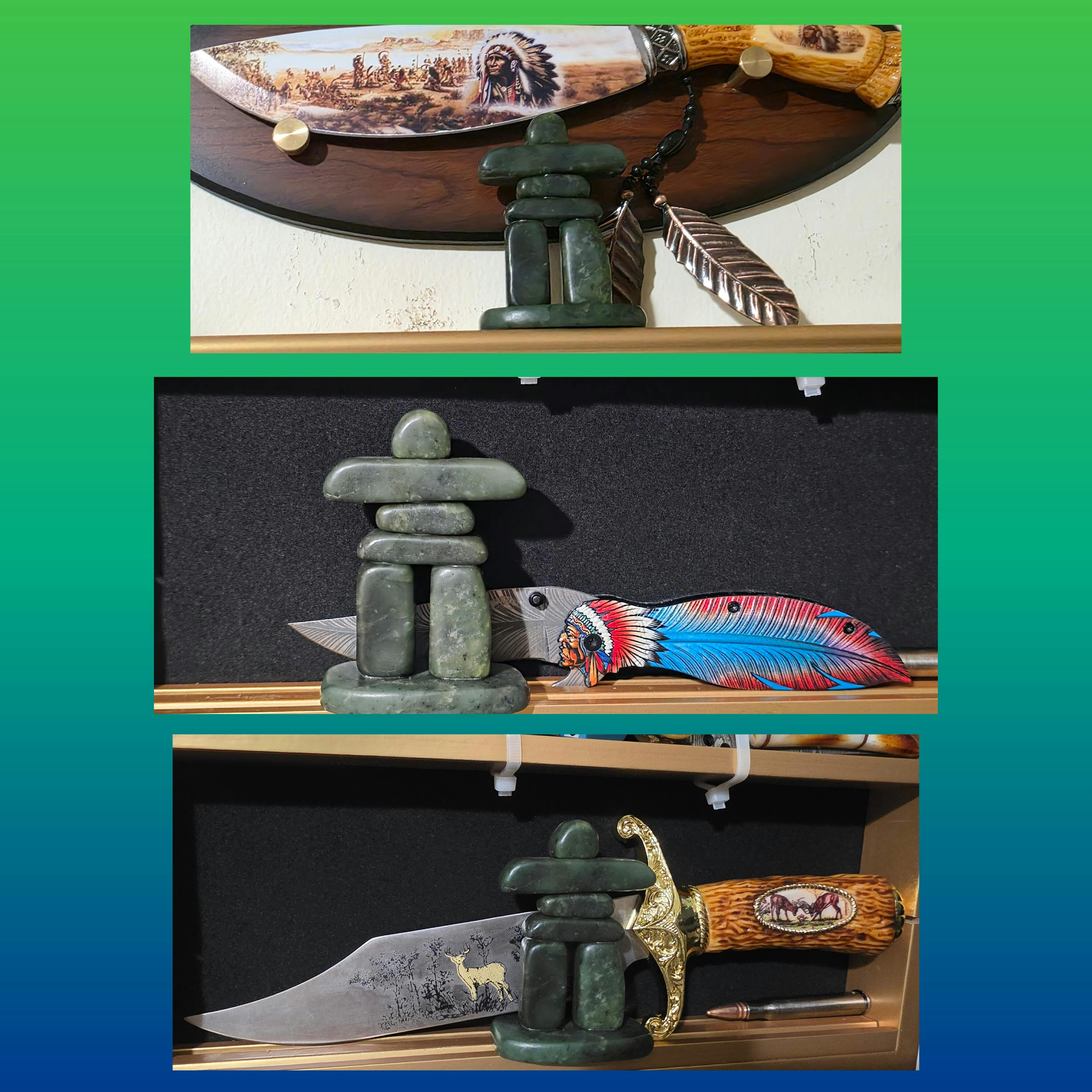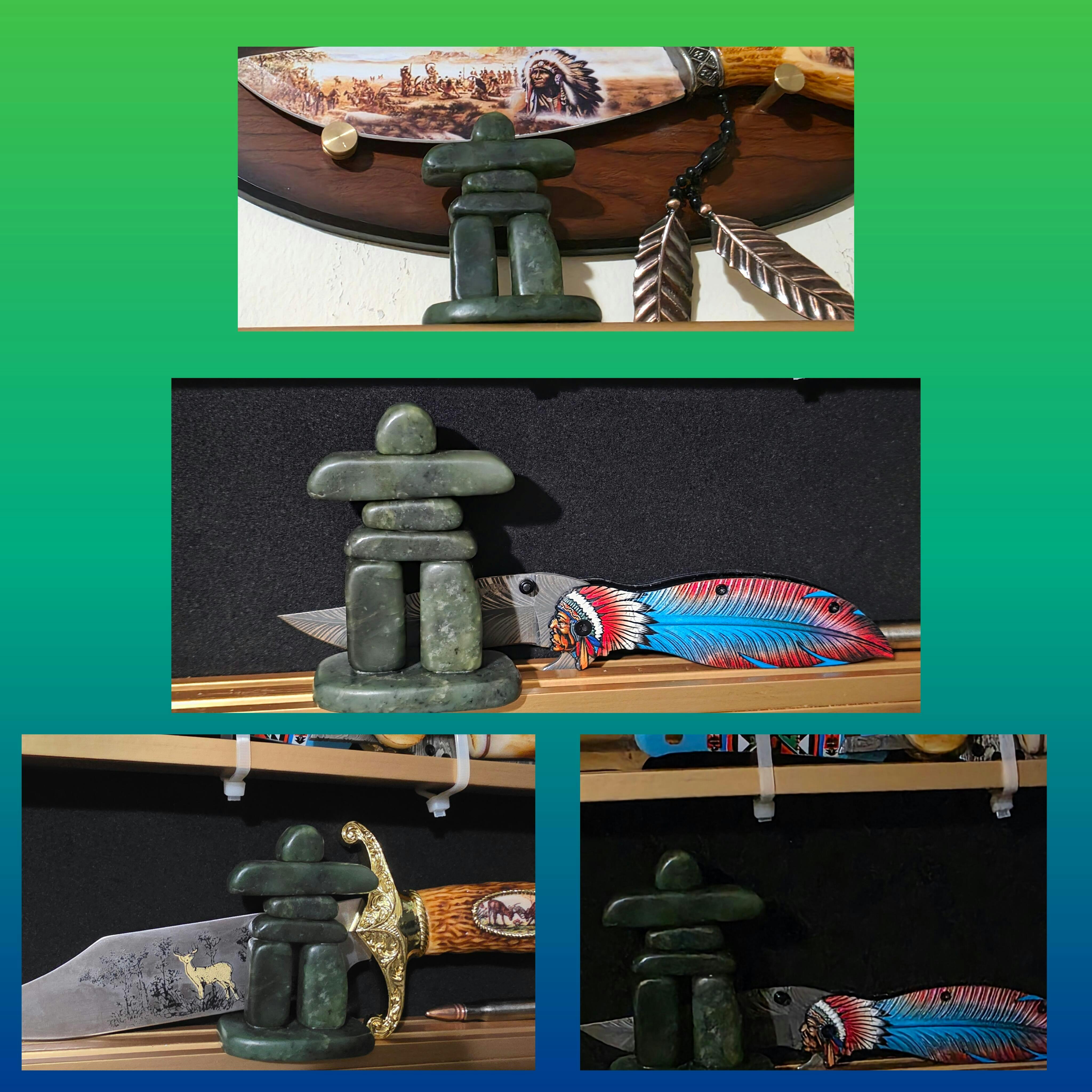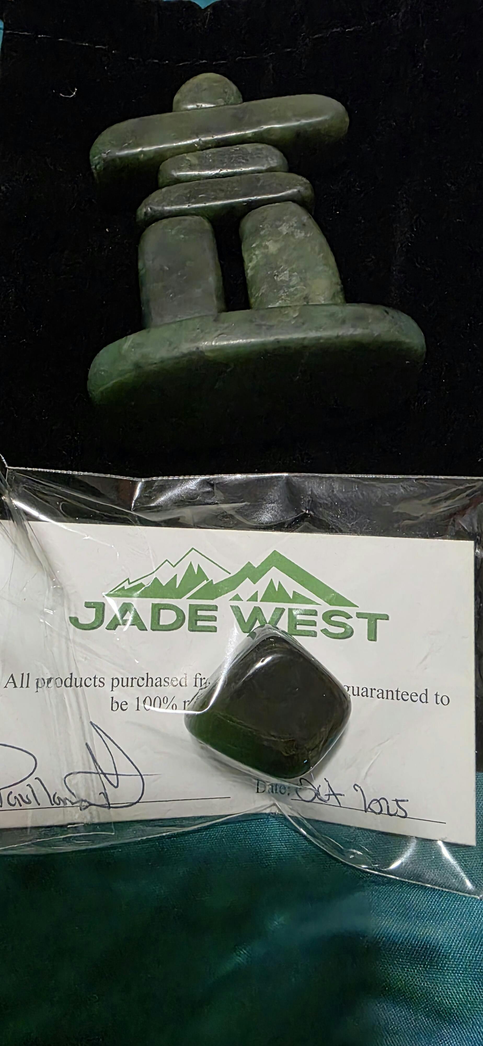 These carvings are all unique and each one is slightly different. The jade has a satin polish and the carving in very rough ( just like how they are found in northern Canada )