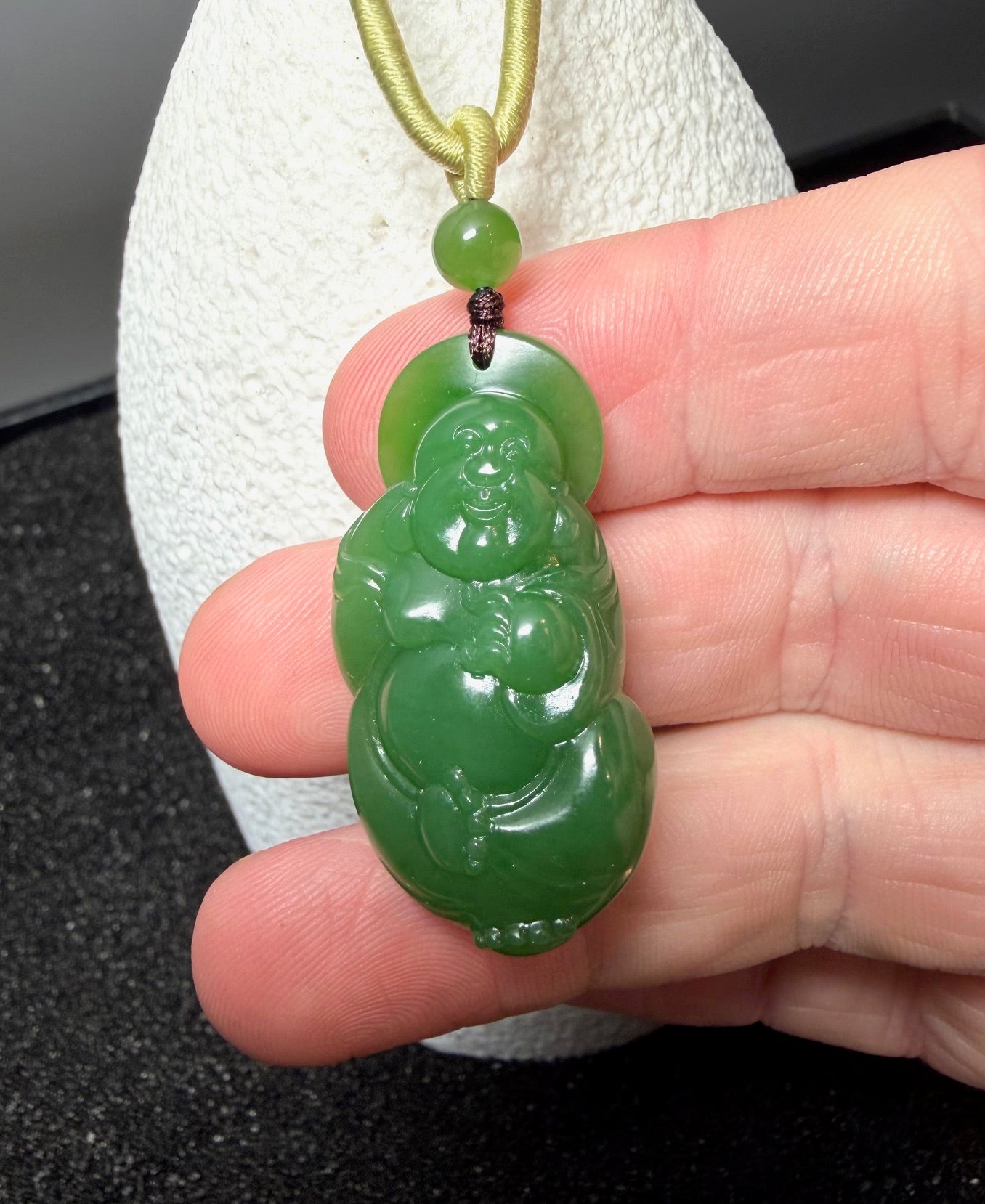 AA Siberian Nephrite Jade Happy Buddha Pendant.