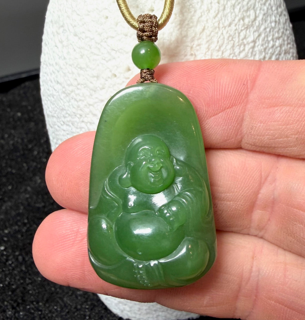AA Siberian Nephrite Jade Happy Buddha Pendant.