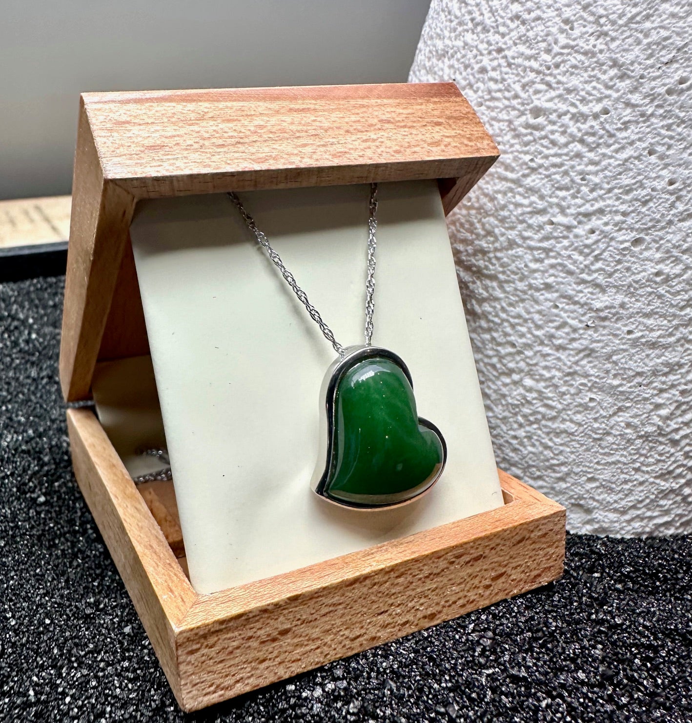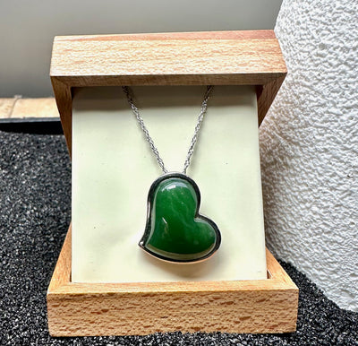 Elevate your collection with this authentic natural jade heart pendant, expertly set in durable stainless steel. The carefully selected jade stone measures 17mm x 21mm, showcasing the stone's natural beauty and subtle variations. Paired with an 18" sterling silver chain, this piece offers refined elegance for everyday wear or special occasions. Presented in a protective gift pouch, it arrives ready to treasure or share. A timeless investment in genuine craftsmanship.