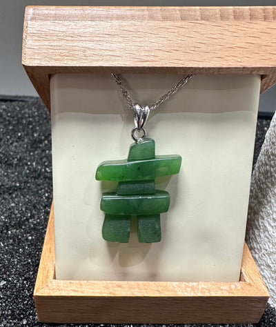Beautiful Canadian Nephrite Jade inukshuk pendant. This pendant measures approximately 25mm and comes with or without a Sterling Silver chain.